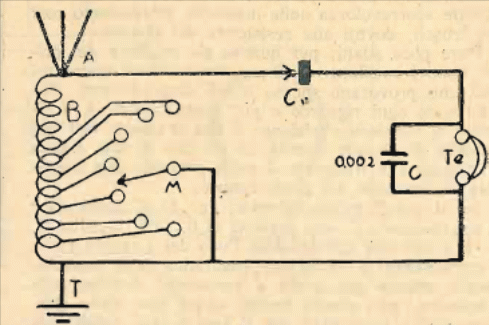 We found this circuit in the La Radio per Tutti magazine in Italy in 1926. The coil can be made with 100 coils 28 thread in a cardboard or PVC tube of 2 to 2.5 cm and with 10 in 10 or 15 in 15 turns. The antenna must be long, and the galena crystal can be replaced with a germanium diode. The handset must be of high impedance.