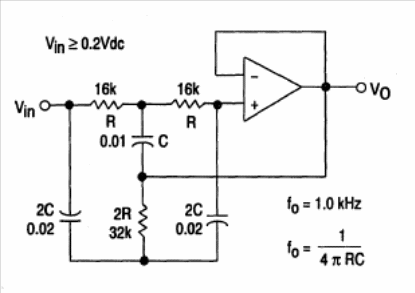 This circuit can also use other series operational amplifiers such as MC33172, MC33174, MC35171, BMC35172 and MC36174. The circuit is from Motorola's 1993 Linear Interface ICs. The formulas make it possible to calculate components according to frequency.