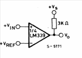 This is the basic configuration of the LM339 as a comparator, requiring a 3k (3k3) pull-up resistor. The circuit is from the 1982 SGS Linear Integrated Circuits Manual.