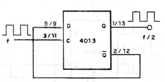 In the figure we give a simple divisor by 2. The complementary output (Q /) is connected to input D, to drive the circuit by dividing the frequency of the input signal by 2. The maximum frequency, on the order of 10 MHz, depends on the supply voltage that can be in the range of 3 to 15 V.
