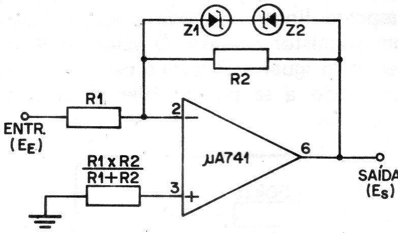 This trimmer or reaper amplifier cuts the signal peaks at a voltage determined by the zener diodes. The gain is given by R1 and R1 and the power supply must be symmetrical from 5 to 15 V.