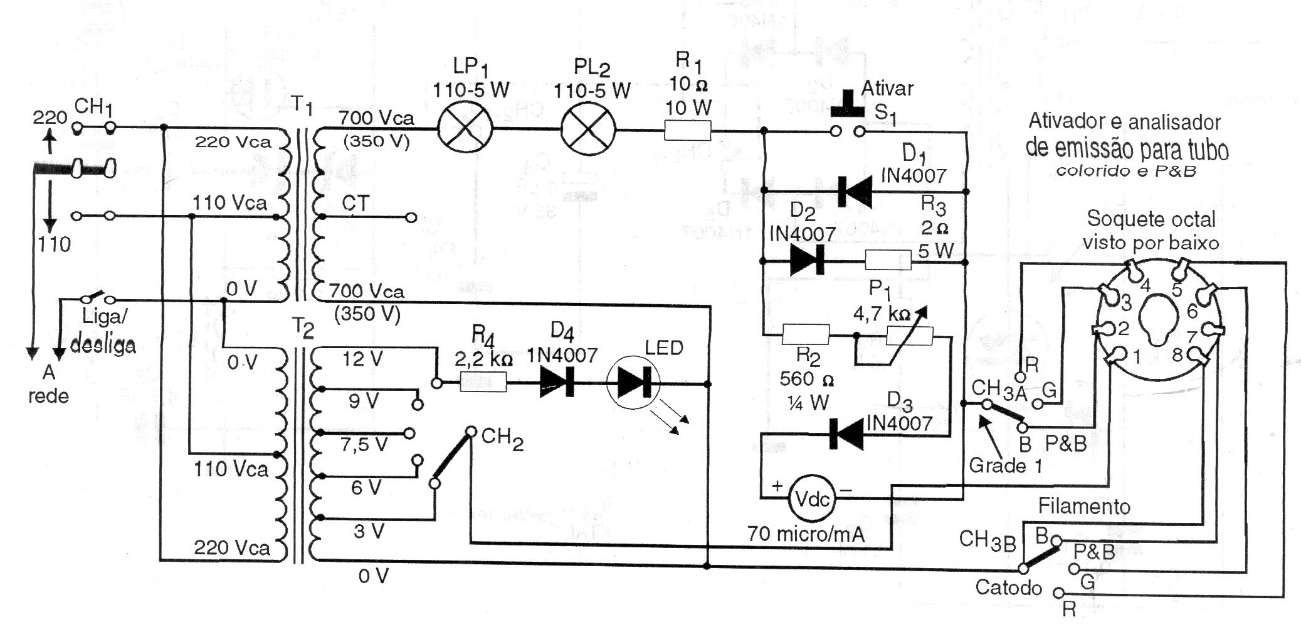 This is an old circuit, from 1997, when cathode ray kinescopes were still used in televisions. This circuit allows the technician to analyze the kinescope and reactivate it when the emission is weak. It can be useful if the player wants to recover an old TV.
