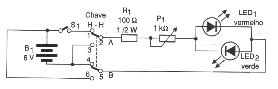 This circuit can be used to show the direction of current flow in semiconductors, such as LEDs. With the current in one direction, one LED lights up and inverting the direction through the switch, the other LED lights up.