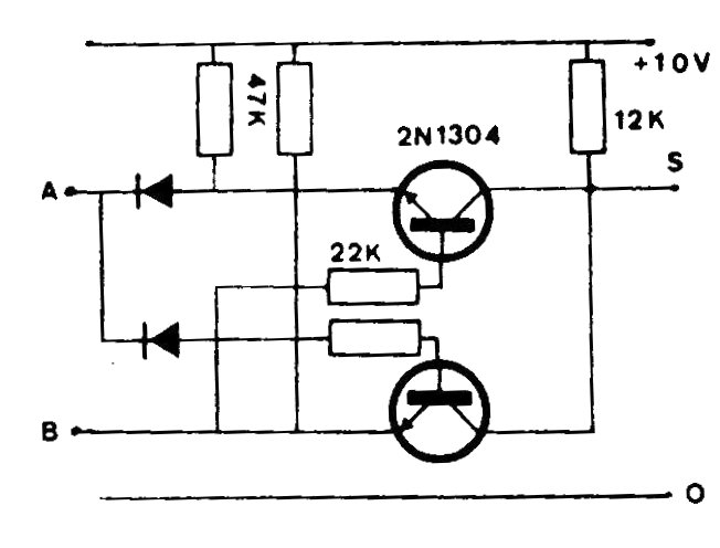 The diodes are for general use and the transistors also in this Exclusive-OR circuit. The circuit may have the values of the resistors changed to 5 V logic.