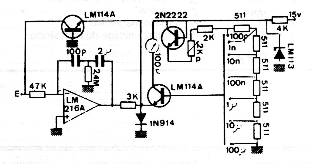 This sensitive microammeter was found in documentation from the 1980s. The accuracy of the circuit depends on the accuracy of the resistors used in the shunt circuit. The 100uA instrument can be replaced by the lower current range of a standard multimeter. Transistors support equivalents.
