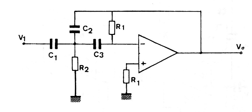The components of this filter are calculated using conventional formulas (see mathematics section of the website) and it can be implemented with almost any operational amplifier such as the 741 and its equivalents. The power supply must be symmetrical.