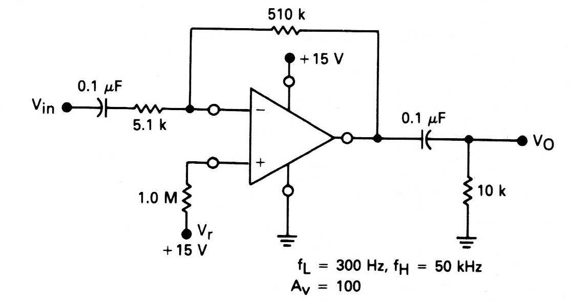 This configuration is from a Motorola circuit manual. It appears elsewhere in this section and can be implemented with virtually any type of operational. The supply voltage depends on the operating mode used.