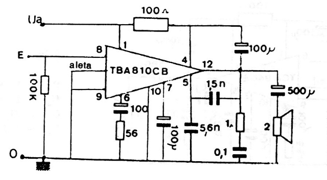 The integrated circuit used in this amplifier is not common today. The circuit is from a publication from the 90s and its supply must be made with 14 V. The input resistance is 100 k and its gain is 37dB.