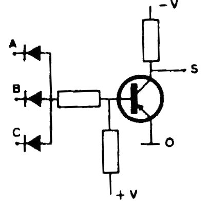 The diodes of this circuit are general-purpose, and the base resistors are typically between 2k2 and 10k. The voltage depends on the logic and the transistor used is for general use. The No-OR function works as a shield.