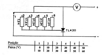 This unusual configuration, due to the component it uses, was found in an old European documentation. The accuracy depends on the resistors and the scales are given in the table next to the diagram.