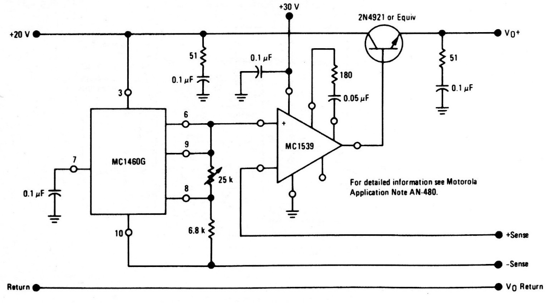 The circuit is from the MC1539 manual, an operational one close to the 741. The transistor admits equivalent and must be mounted in a good heat sink.