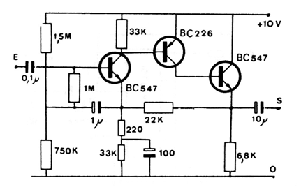 We found this preamplifier circuit with high input resistance, on the order of 30 M ohms, in an old documentation. Transistors can be exchanged for modern equivalents. The voltage gain is 100 and the output resistance is 150 ohms.
