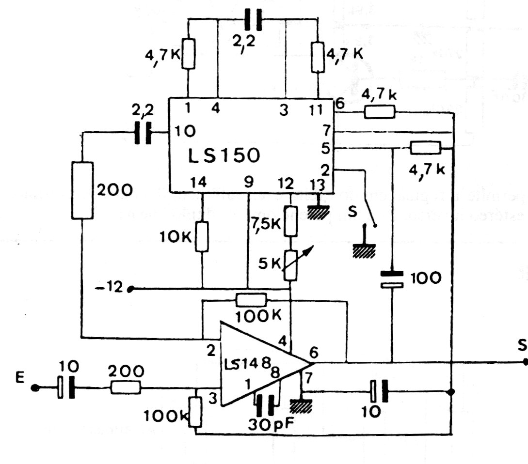This volume compressor uses unusual components today. The circuit was found in documentation from the 1980s. The circuit is for audio signals. The LS150 is a high-performance operational amplifier.