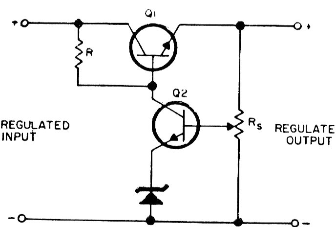 In the figure we have the configuration of a variable voltage regulator with two transistors and a zener diode. The transistor mainly, depending on the output current, must be equipped with a heat sink. The components are calculated according to the characteristics of the transistors and the output voltage.