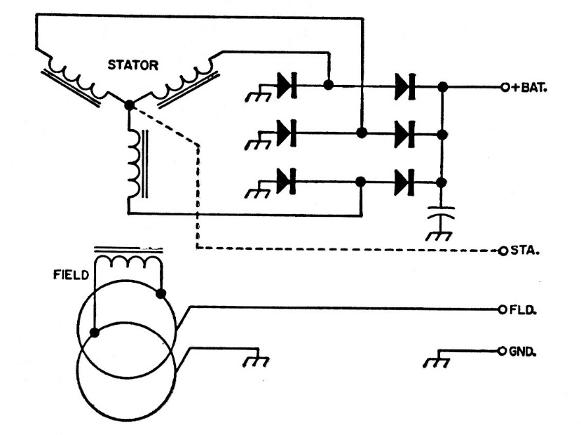 In the figure below we have the typical circuit of an automotive star alternator with the rectifier sector. The diodes depend on the current and the circuit is given as a reference for a Ford vehicle.