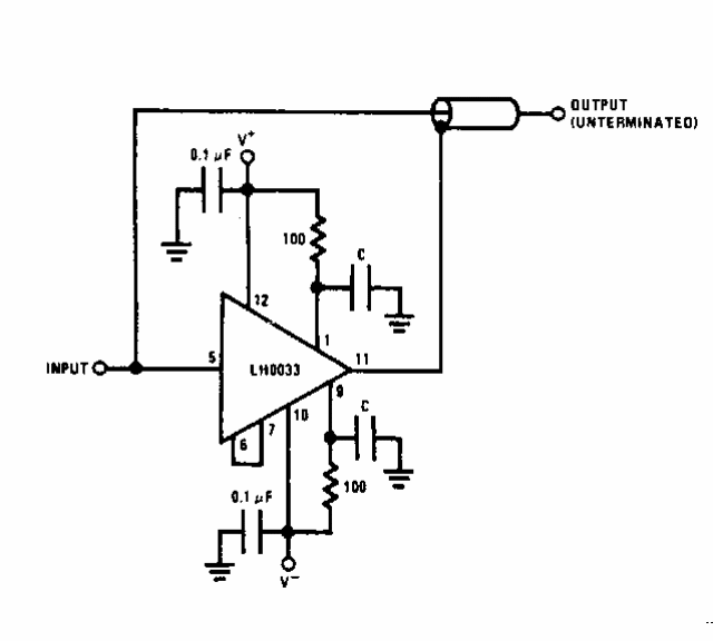 This circuit was found in National documentation from the 1980s. The circuit is intended for transmitting signals on a shielded cable.