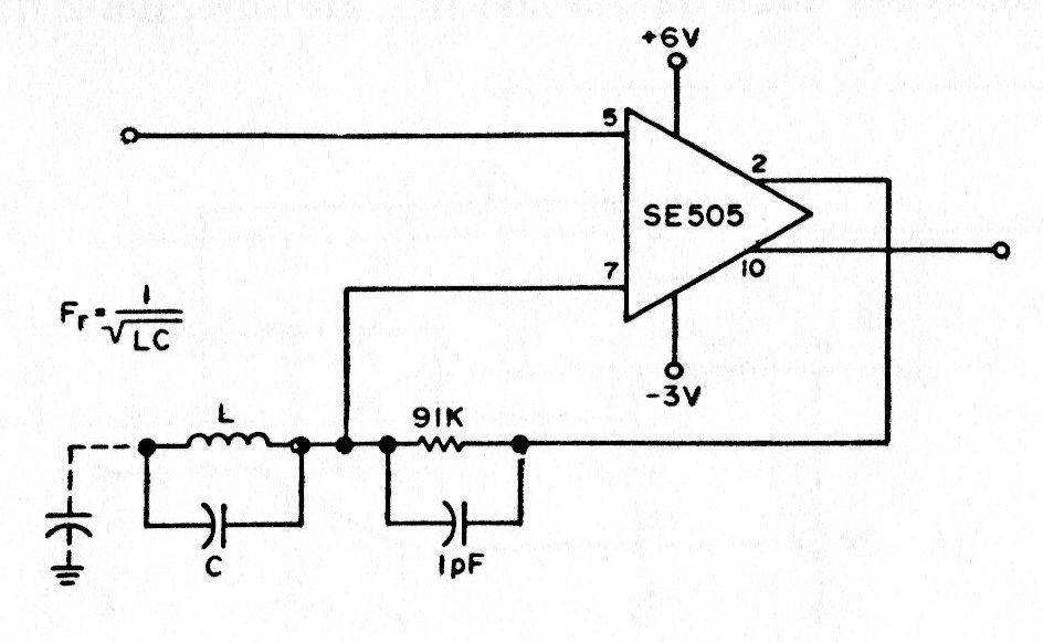 The operational amplifier used in this circuit is not common today. The frequency is given by the components L and C calculated according to the formula given in the diagram. The operational admits equivalent and must be powered by a symmetrical source.