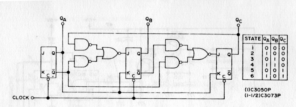 This divider by 6 is synchronized because it is implemented based on TTL or CMOS logic according to the desired application. The circuit is from American documentation and the maximum speed depends only on the logic used.