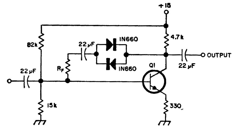 The gain of this step is controlled by the feedback circuit depending on the strength of the input signal. The circuit will operate with modern general-purpose transistor.
