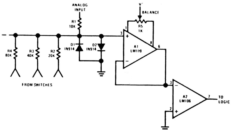 This circuit is from the manual of the components used, from the 80s. The circuit is valid for modern operationals. It contains an R / 2R network and a comparator. The power supply must be symmetrical.