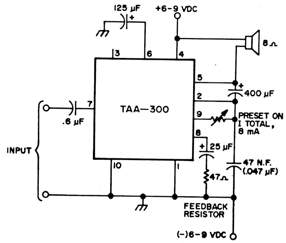 The integrated circuit used in this 70's application is not common today. The circuit consists of a small audio amplifier with few external components.