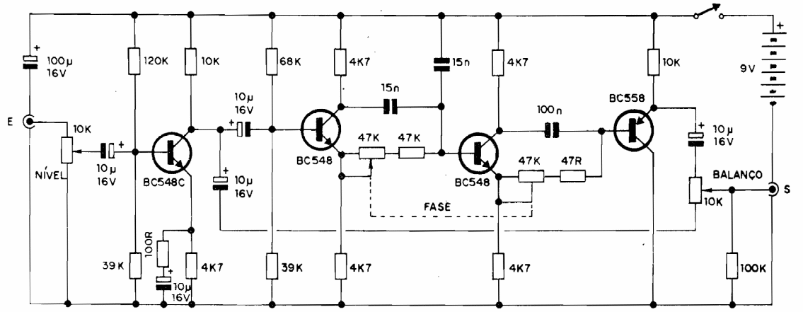 This guitar effect circuit uses components that are still common in our market. We found the circuit in an old documentation and its supply must be made by battery to avoid the capture of hum from the power grid if a source is used.