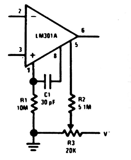 In the figure we have the way to compensate an operational amplifier. The circuit is valid for types that do not have this feature internally. We found the configuration in an old factory manual from the 80s.