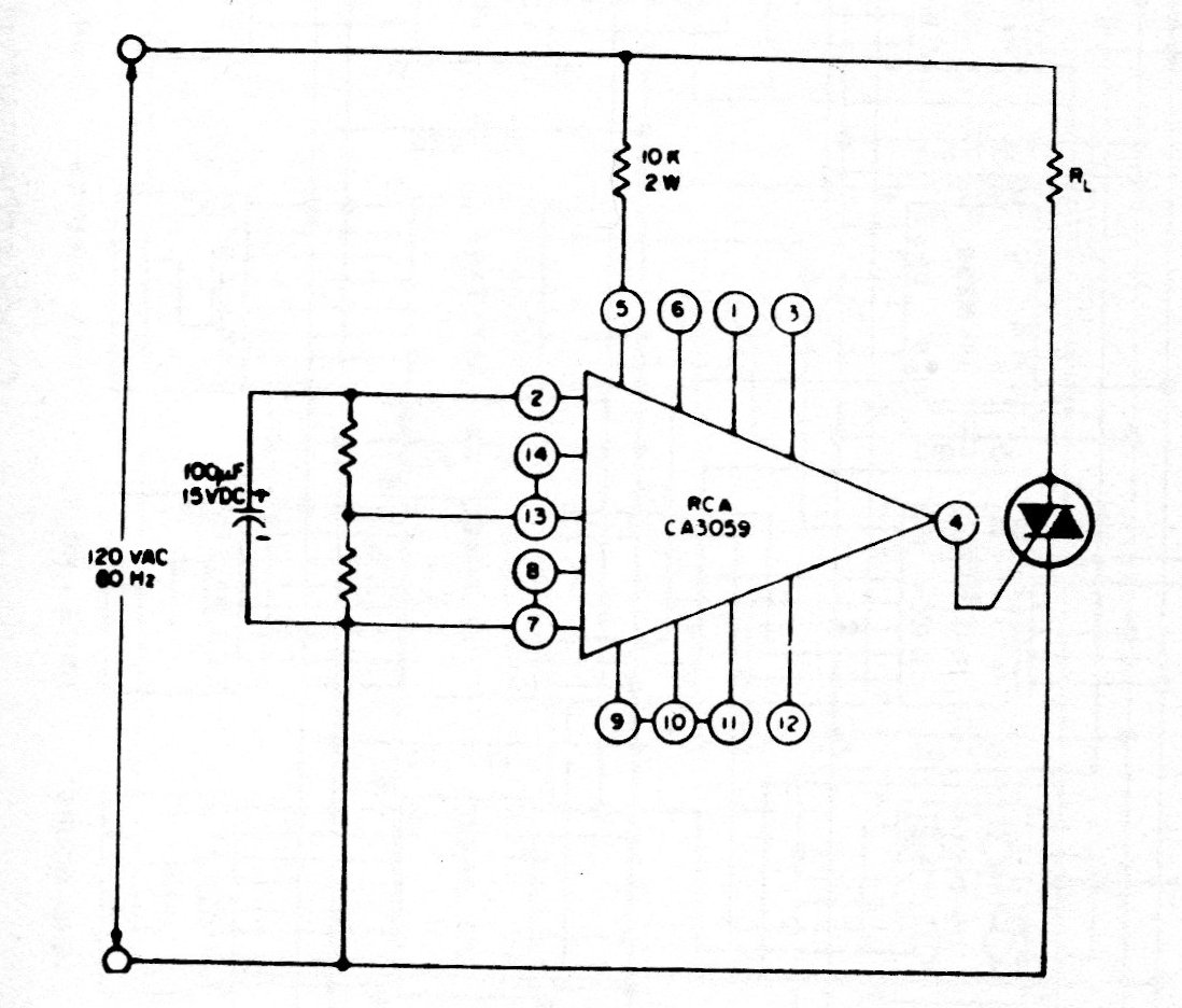 This old circuit, from the 80's, uses an integrated circuit that is uncommon today. The circuit is intended for loads controlled by triac and the resistors depend on the desired control.