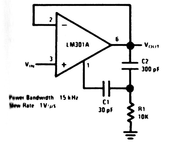 In the figure we have the way to compensate an operational amplifier. The circuit is valid for types that do not have this feature internally. We found the configuration in an old factory manual from the 80s.