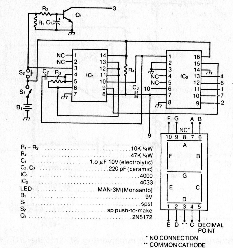 This circuit is from 80s documentation, using still common CMOS components. The display is 7 segments.