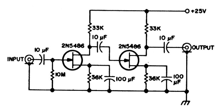 The FETs of this circuit can be the BF245. The circuit is from an old documentation and can be used in the amplification of infrasonic waves, of a sonic attack, for example.