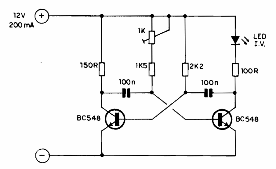 This infrared emitter (pulsating) can be used with several other alarm and remote-control circuits on this site and also with the next circuit (CB20338). The LED is of the type of good power and the frequency adjustment made in the trimpot.
