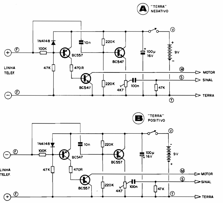 We found this circuit in documentation from the 1980s. It drives an old cassette or roller type recorder, acting on the engine and sending the recording signal. Two versions are given depending on the ground of the circuit on which it must operate.