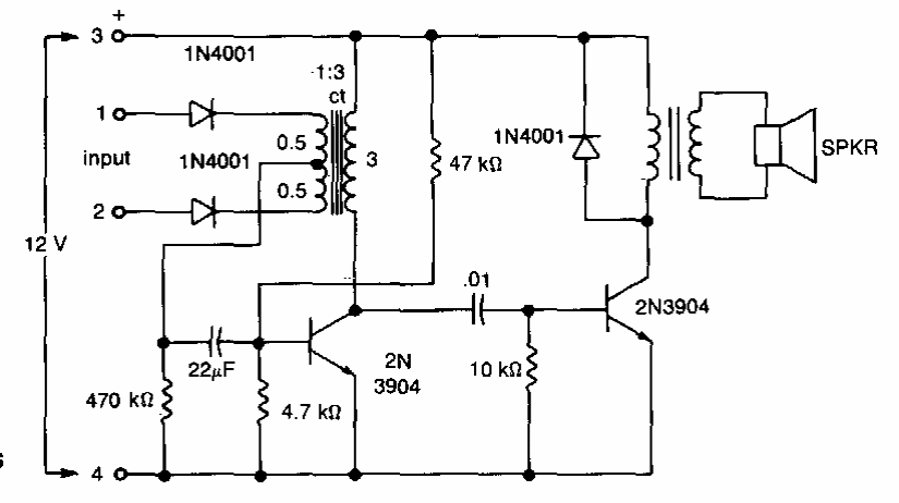 We found this circuit in documentation from the 1980s. The transformer is of the low voltage type with a 1: 3 turn ratio and the transistors can be of general-purpose types.