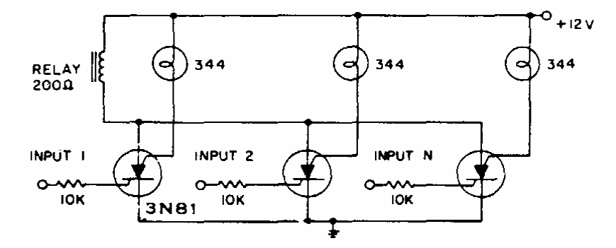 We found this circuit in a 1985 technical publication. The circuit uses PUTs to drive lamps. Relays or LEDs can be used with the voltage according to the supply.