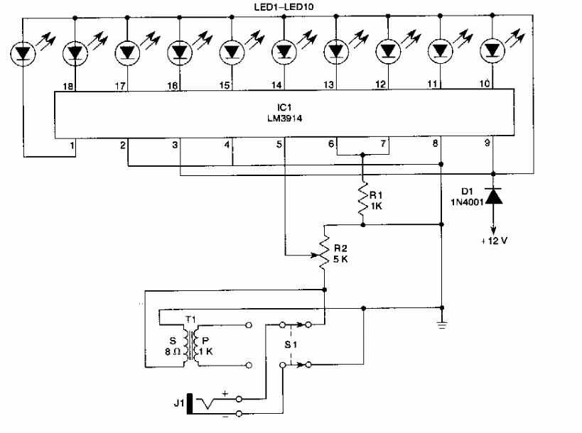 Found in Electronics Now this circuit is indicated for operation at the output of audio amplifiers. The circuit is powered by 12 V from the amplifier itself or from another source.