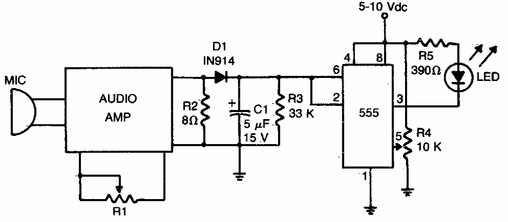 Any small sound amplifier from 200mW to 1W can be used in this simple circuit. Or circuit of two 80s based on a trigger like 555.