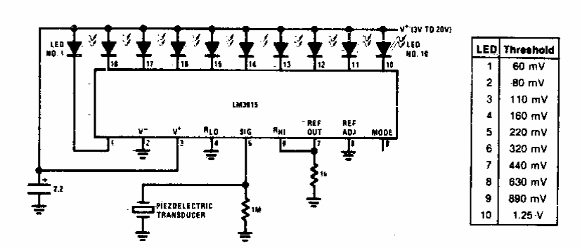 Any sensor or piezo capsule can be used as a sensor in this circuit. The integrated circuit is also common in our days and a table of sensor voltage levels.