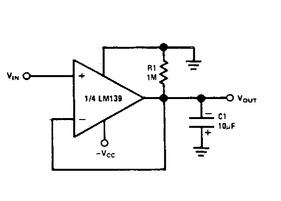 Found in a National Semiconductor manual from the 1980s, this circuit uses a voltage comparator of the time. The power can typically be between 5 and 12 V.