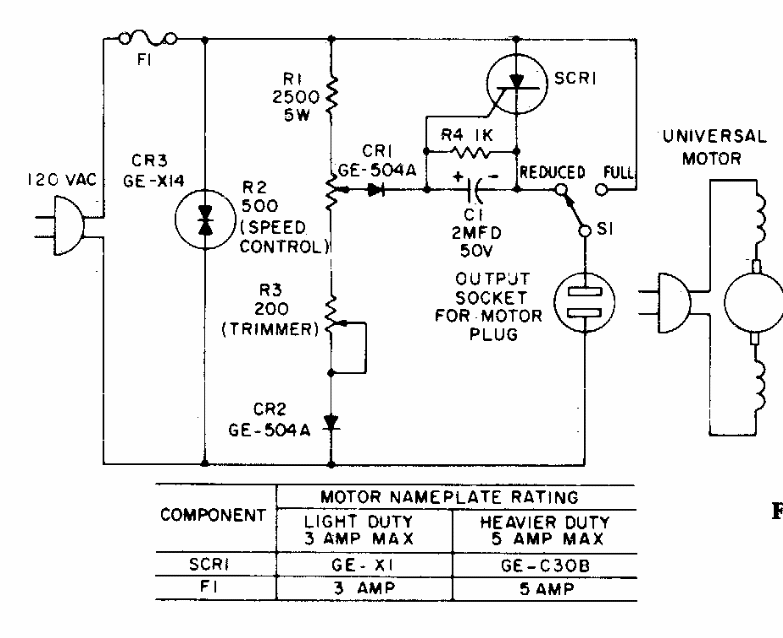 This plug-in control was found in General Electric documentation from the 1970s. The SCR can be the TIC106 mounted on a heatsink. The circuit can be changed to the 220 V network.