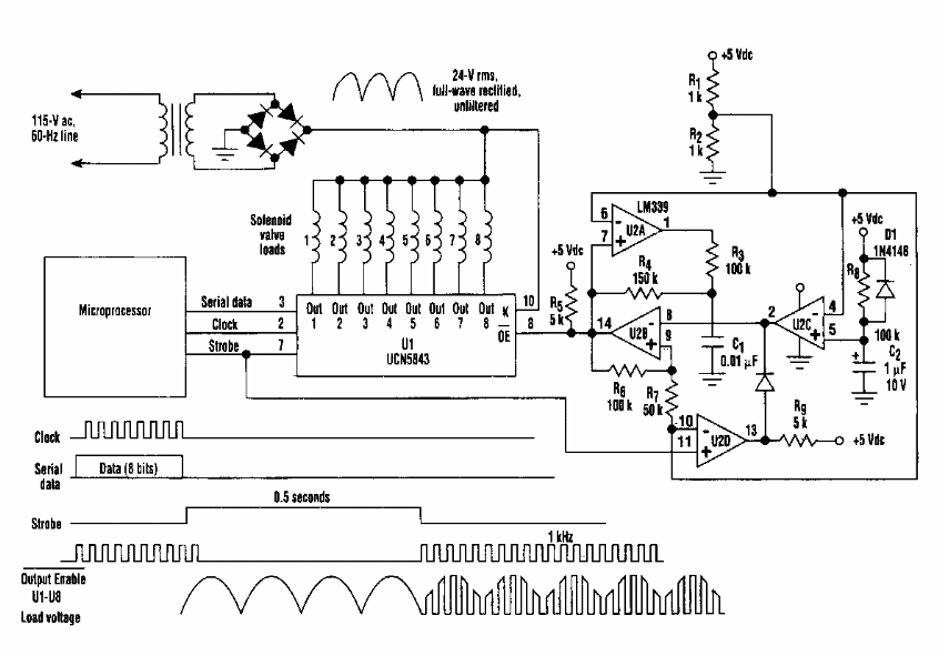 Found in an Electronic Design from the 80's, this circuit uses components from that time. He has outputs for activating 8 solenoids from a microcontroller.