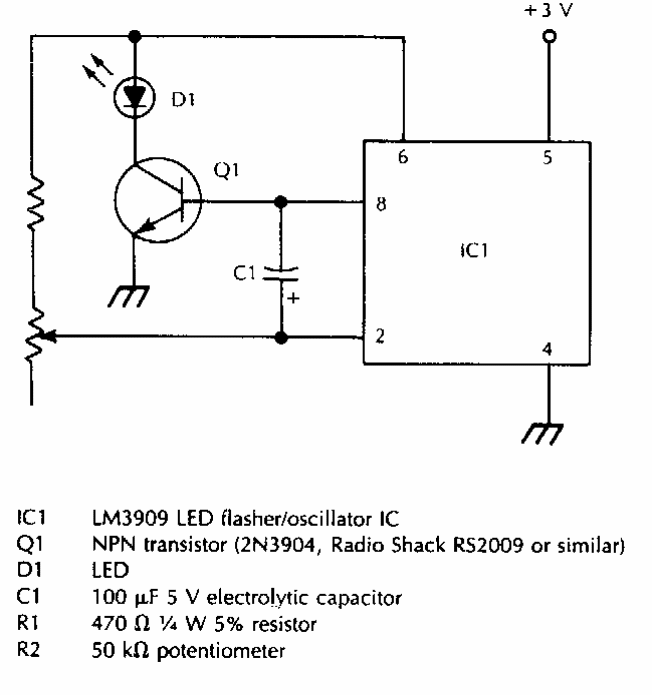 Found in American documentation from the 1980s, this circuit shows how to use an LM3909 pulsator in a high-power variable circuit.