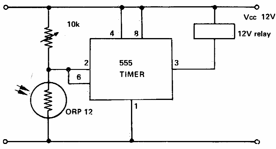 This Schmitt optical trigger with LDR was found in old documentation. The relay must be sensitive, or an additional step must be used to trigger it.