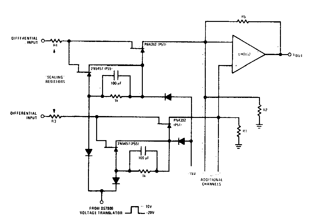 This differential multiplexer was found in an American documentation from the 70s. The operational amplifier is from that time. The frequency, which can reach a few megahertz, depends on the operational amplifier.