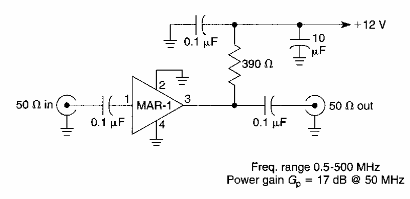This circuit for receivers was found in an American documentation from the 90's. The circuit operates at up to 500 MHz. The integrated circuit used is uncommon nowadays.