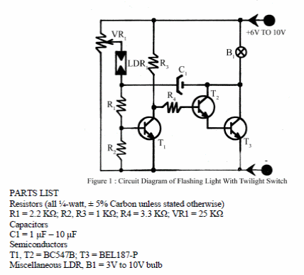 This simple blinker for incandescent lamp was obtained from an English documentation. The power transistor can be an IP31, TIP41 or 2N3055 depending on the lamp power.