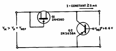 This 6V regulator with FET was found in an old Electronic Design. FET and transistor admit modern equivalents.