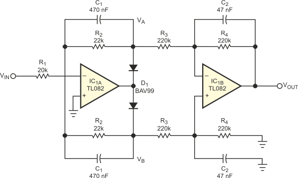 This circuit was found in a Texas Instruments Operational Amplifier manual. The output voltage is the average value of the input voltage. Equivalent operational amplifiers can be used.