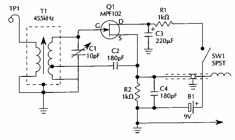 This oscillator uses a small IF transformer taken from an old transistor radio. FET admits equivalents. The circuit can be used to calibrate radios.