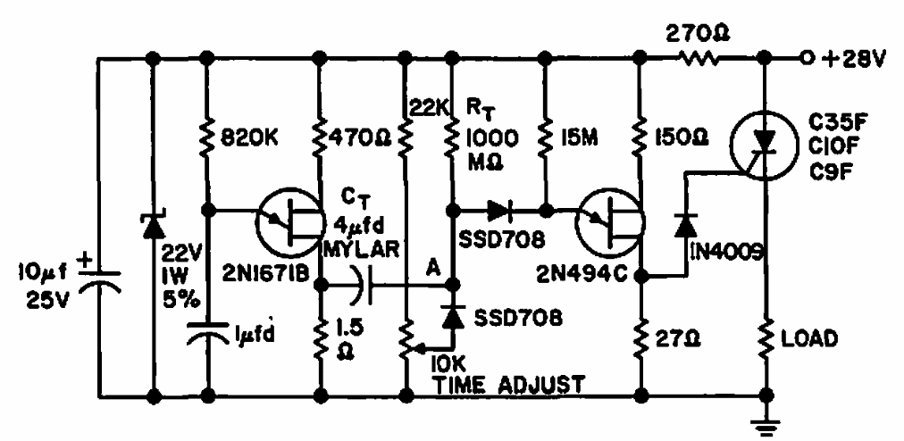 This circuit was found in a 1960s General Electric unijunction transistor manual. The circuit can use any unijunction and the SCR is load sensitive.